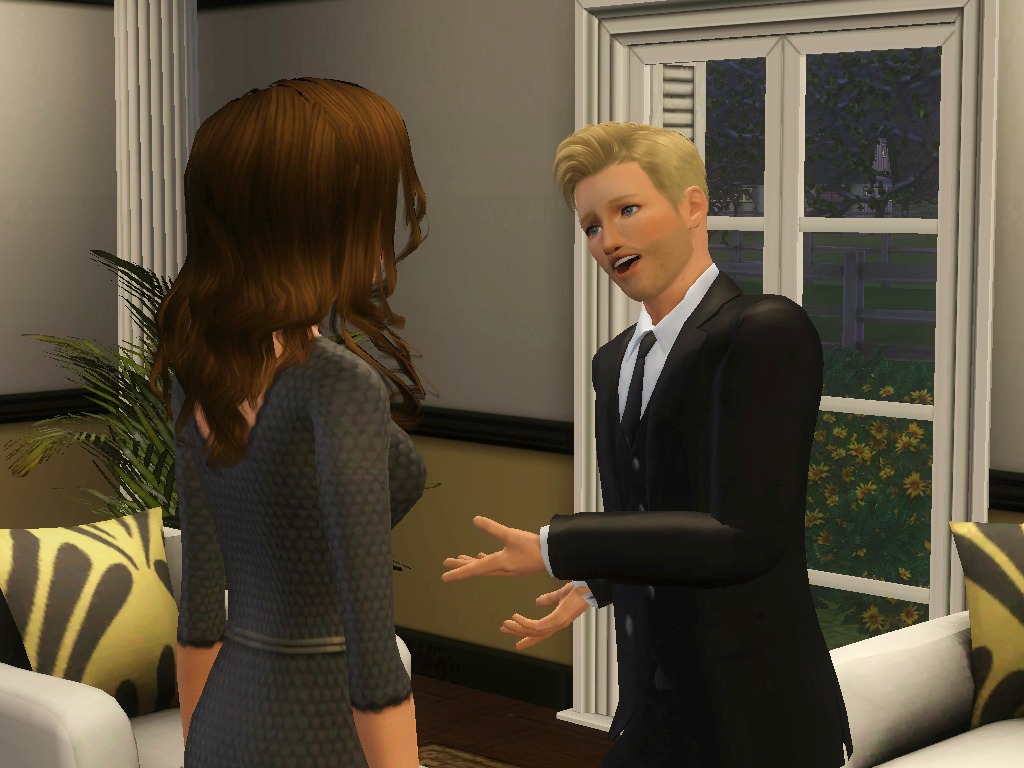 Oh I'm so glad I'm not the only person having those conversations with their characters!!! Jeff is the worst. He'll just stop talking to me if I don't do what he wants. We had a standoff for a while he and I did. George and Steph are completely opposite, they are always telling me what they want (even if it's not what I want and we have discussions about that). Then there's Trev. . .he just buts in whenever and makes sarcastic comments about everything. I swear, I'm insane but it's okay; I love them and all of their quirks. lol!