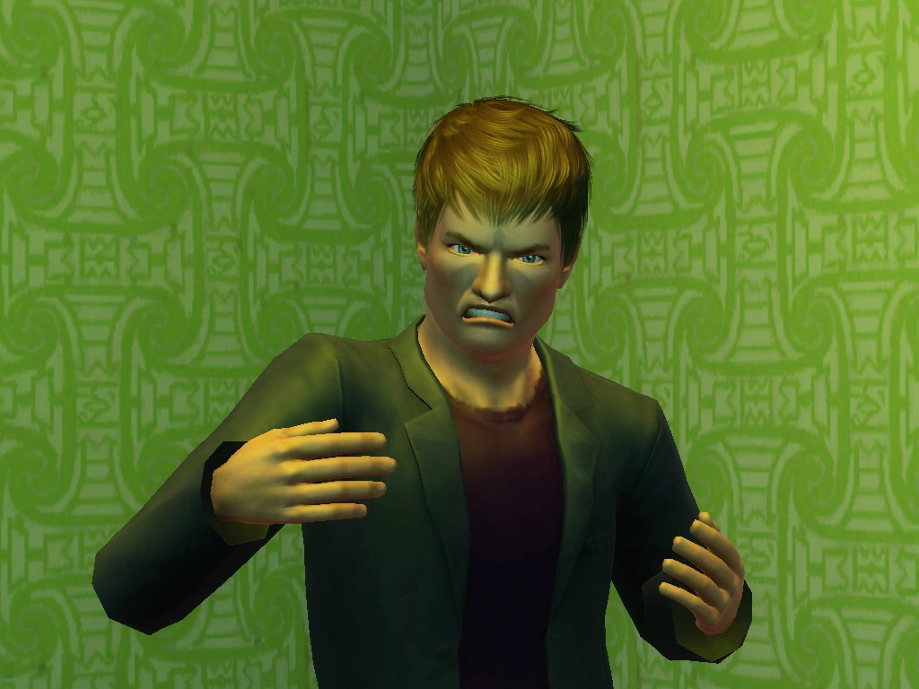 I loved the lighting and the green background with Trevor, It almost made me picture him ripping off his shirt and turning into the hulk. lol. Damn Trev, he scares me sometimes, I swear its like he's a ticking time bomb that could go off at any moment. It's obvious that he has a lot of deep seated emotional issues deep down and uses drinking as a crutch. It's sad really. :(